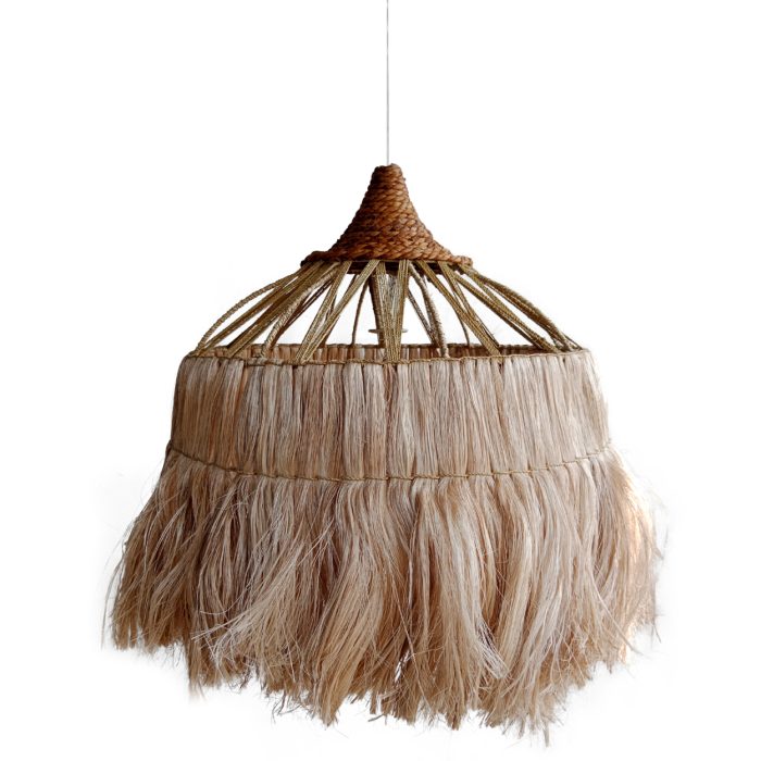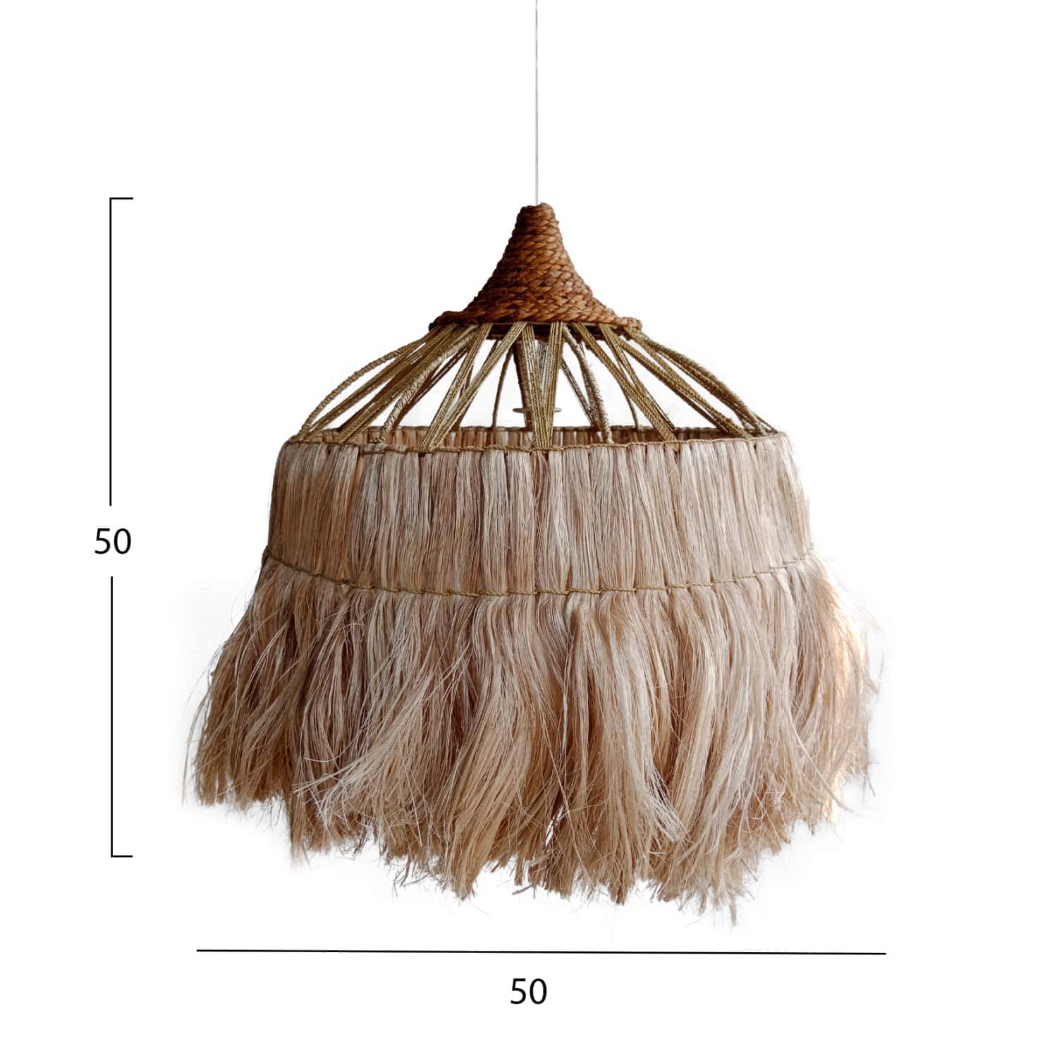 FB97764- Kρεμαστό φωτιστικό—- Αν επιθυμείτε να διακοσμήσετε το χώρο σας με ένα φωτιστικό σε ιδιαίτερο στυλ, αυτό είναι μια χαρακτηριστική επιλογή. Είναι ένα μονόφωτο φωτιστικό με «καπέλο» σε κυλινδρικό σχήμα φτιαγμένο από ίνες κάνναβης Μανίλας σε φυσικό χρώμα. Το ιδιαίτερο χαρακτηριστικό αυτού του φωτιστικού είναι ότι το καπέλο δένεται με το καλώδιο κρέμασης με σχοινιά αφήνοντας όλο το επάνω μέρος ανοιχτό.